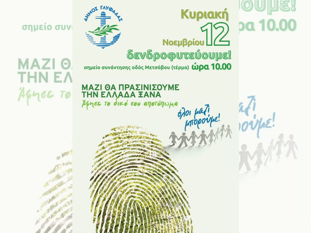 Στη Γλυφάδα έχει οριστεί δενδροφύτευση για την προσεχή Κυριακή 12 Νοεμβρίου, με σημείο συνάντησης το τέρμα της οδού Μετσόβου, στις 10 το πρωί.