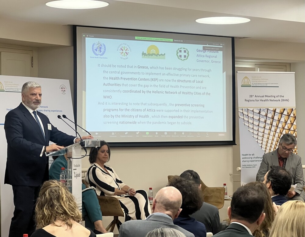 Κεντρικός ομιλητής στην εναρκτήρια ενότητα της 28ης ετήσιας τριήμερης συνάντησης του Ευρωπαϊκού Δικτύου των Περιφερειών για την Υγεία του ΠΟΥ, που διεξάγεται στην Σεβίλλη, ήταν ο Περιφερειάρχης Αττικής και Πρόεδρος του ΙΣΑ, Γιώργος Πατούλης.