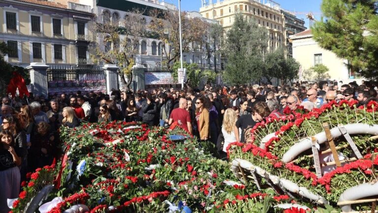 Χιλιάδες άνθρωποι, φοιτητές, εκπρόσωποι φορέων, παρατάξεων και κομμάτων έδωσαν το “παρών” στην πορεία στο Πολυτεχνείο, προκειμένου να αποτίσουν φόρο τιμής, σε αυτούς που πολέμησαν για τη δημοκρατία.