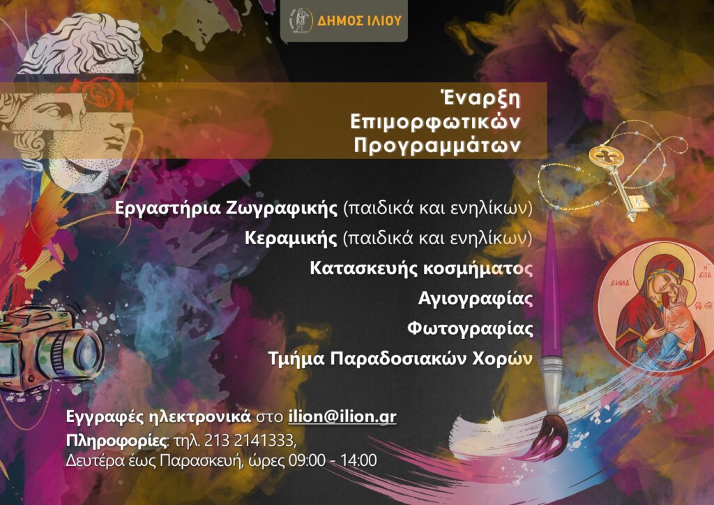 Ξεκινά η λειτουργία των επιμορφωτικών προγραμμάτων του Δήμου Ιλίου την Παρασκευή 1 Δεκεμβρίου 2023, για την περίοδο 2023 – 2024.