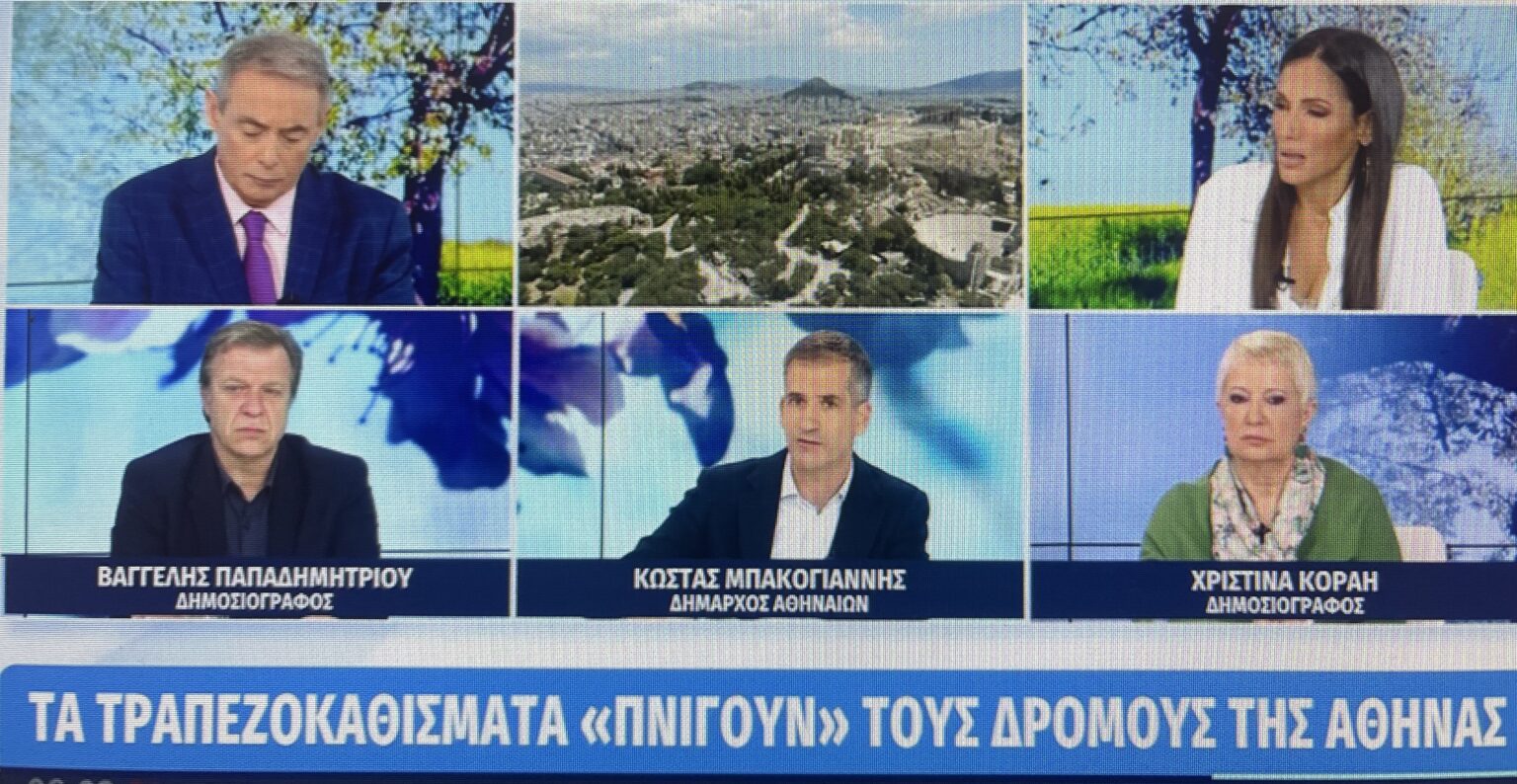 Για το πρόβλημα με τα τραπεζοκαθίσματα στην πόλη, ο κ. Μπακογιάννης τόνισε ότι αυτό υφίσταται και ότι για την αντιμετώπισή του χρειάζεται μία πολιτική “του μέτρου”, την οποία ο δήμος ήδη εφαρμόζει. Στον δημόσιο χώρο, τόνισε, μπορούμε να συμβιώσουμε όλοι, χωρίς αποκλεισμούς, αλλά μέσα σε ένα συγκεκριμένο πλαίσιο. Όπως ανέφερε, στα καταστήματα τα οποία δε συμμορφώνονται ο δήμος σε πρώτη φάση επιβάλλει πρόστιμο, σε δεύτερη φάση αφαιρεί τα τραπεζοκαθίσματα, σε επιχειρήσεις που γίνονται δύο φορές την εβδομάδα και πλέον μέσω της νέας νομοθετικής ρύθμισης σφραγίζονται καταστήματα.