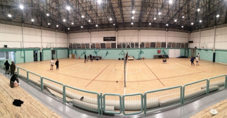 Επίσης έγινε αντικατάσταση των ειδών υγιεινής με υδραυλικές εργασίες ύδρευσης – αποχέτευσης, τοποθέτηση ερμαρίων στους χώρους των αποδυτηρίων και δημιουργία ειδικά διαμορφωμένου χώρου WC για ΑμεΑ, ενώ παράλληλα αντικαταστάθηκαν τα κουφώματα του αγωνιστικού χώρου με κουφώματα αλουμινίου, έγινε αλλαγή δαπέδου με δάπεδο pvc, κατάλληλο για χρήση σε επαγγελματικούς χώρους (μπάσκετ, βόλλευ κ.α.).