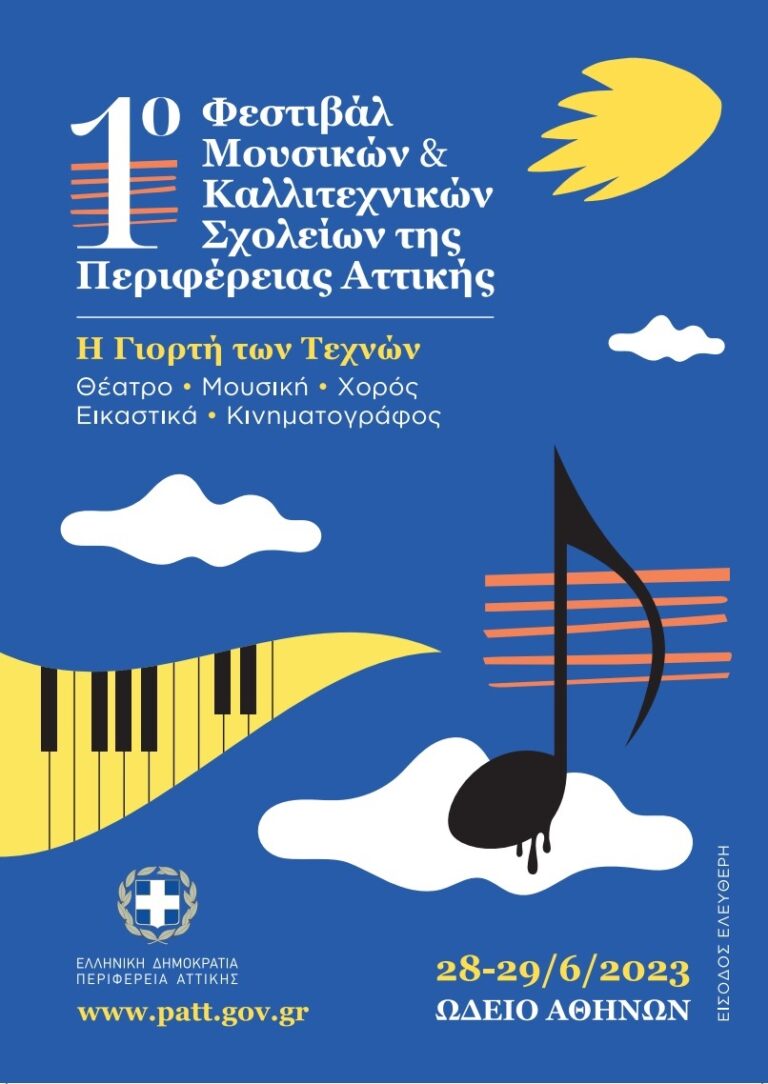 Πρόκειται για το 1ο Φεστιβάλ Μουσικών και Καλλιτεχνικών Σχολείων της Περιφέρειας Αττικής το οποίο διοργανώνεται αύριο Τετάρτη 28 και την Πέμπτη 29 Ιουνίου στο Ωδείο Αθηνών (Ρηγίλλης & Βασ. Γεωργίου Β’ 17-19, Αθήνα), κατόπιν σχετικής πρωτοβουλίας του Περιφερειάρχη Γ. Πατούλη και υπό το συντονισμό του Αντιπεριφερειάρχη Παιδείας Χ. Αλεξανδράτου.