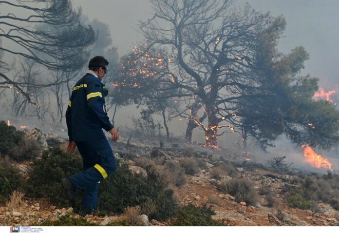 Η φωτιά στην Αγία Παρασκευή καίει εκτός ελέγχου με πυροσβέστες, Ελληνική Αστυνομία, Στρατό, εθελοντές και ανθρώπους από την Περιφέρεια να βάζουν τη ζωή τους σε κίνδυνο, σε μια άνιση μάχη με τις φλόγες.