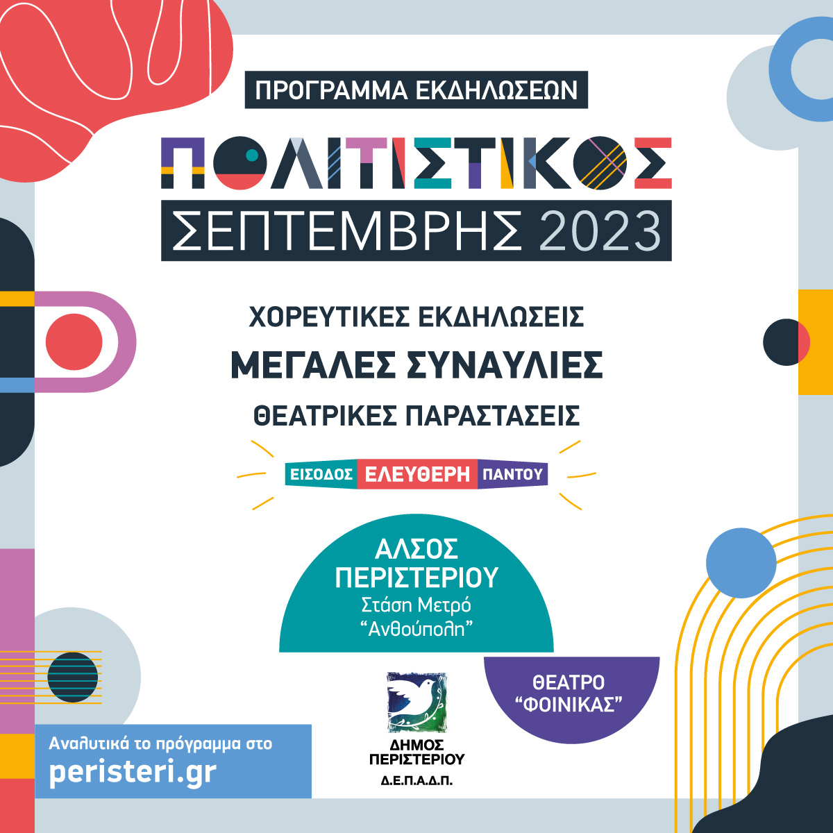 Για πρώτη φορά στα Δυτικά, οι σύλλογοι της Δυτικής Αθήνας ενώνονται σε ένα φαντασμαγορικό θέαμα ποντιακών χορών. Συνδιοργάνωση: Δήμος Περιστερίου – Ένωση Ποντίων Περιστερίου.